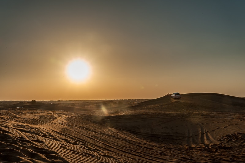 Aber von Anfang an. Simon und ich wurden von einem Fahrer von Alpha Tours zur verabredeten Zeit direkt am Hotel in Empfang genommen. Mit einem Jeep/SUV ging es weiter, um an zwei anderen Hotels in der Nähe noch weitere Teilnehmer abzuholen. Dann ging es einfach nur noch raus aus der Stadt. Gefühlt fuhren wir ewig, doch so groß ist Dubai eigentlich nicht.